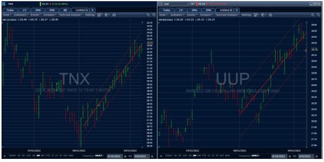 That being said, I am not sure CPI matters unless we get a hot number. A hot number would send stocks downward as we are currently priced for cooling inflation. While a cool CPI provides a little more upside clearance for bulls, I expect whatever additional upside is generated to evaporate the following week after the September meeting where I expect the FED will reiterate its hawkish stance. The FED needs “clear and convincing” evidence inflation is coming down through multiple reports over consecutive periods. CPI is one report. This would be the second consecutive report of declining inflation. It will not be enough to change the FED’s hawkish posture.