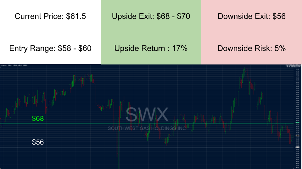 SWX remains a top 10 holding in Icahn’s (renowned activist) portfolio, pays a 4% dividend, and management has taken action to improve underlying performance. From a technical perspective, the stock is coming off a double bottom at $57. With expectations this low, little has to go right to get an upside surprise resulting in a lucrative trade.