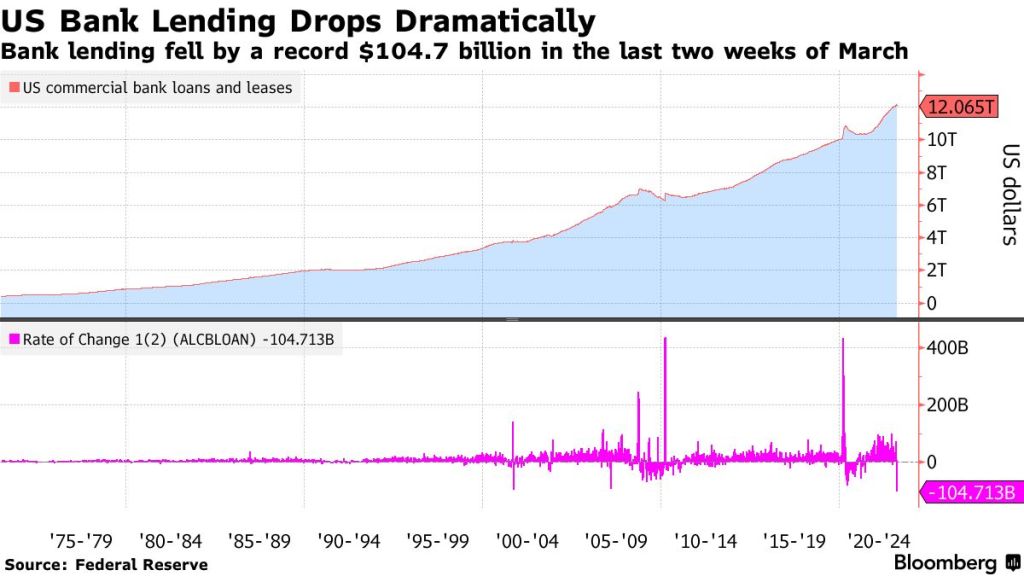 The Fed plans to cool inflation by tightening financial conditions. Prior to earnings, it was expected that lending standards would tighten significantly at all levels, particularly the regional and community level. This would do the Fed’s job in the real economy, without the need for the Fed to hike rates. While Friday’s reports showed that the big money center banks benefited from the regional scare, it did not discredit expectations for stricter lending standards. Consequently. I do not think earnings from the big money centers warranted a rethink of Fed policy or future expectations of stricter lending standards. Furthermore, Bloomberg reported that U.S. bank lending saw its biggest decline on record (since 1973) in the final weeks of March (represented by the purple bar). This indicates that the health of big banks should not be used to extrapolate on the health of the overall lending market.