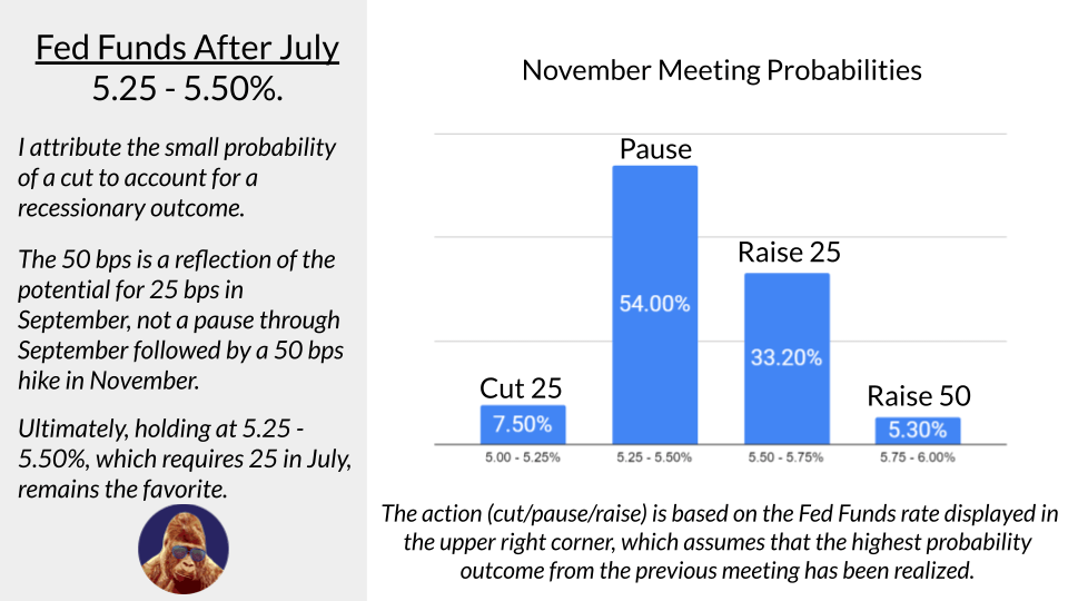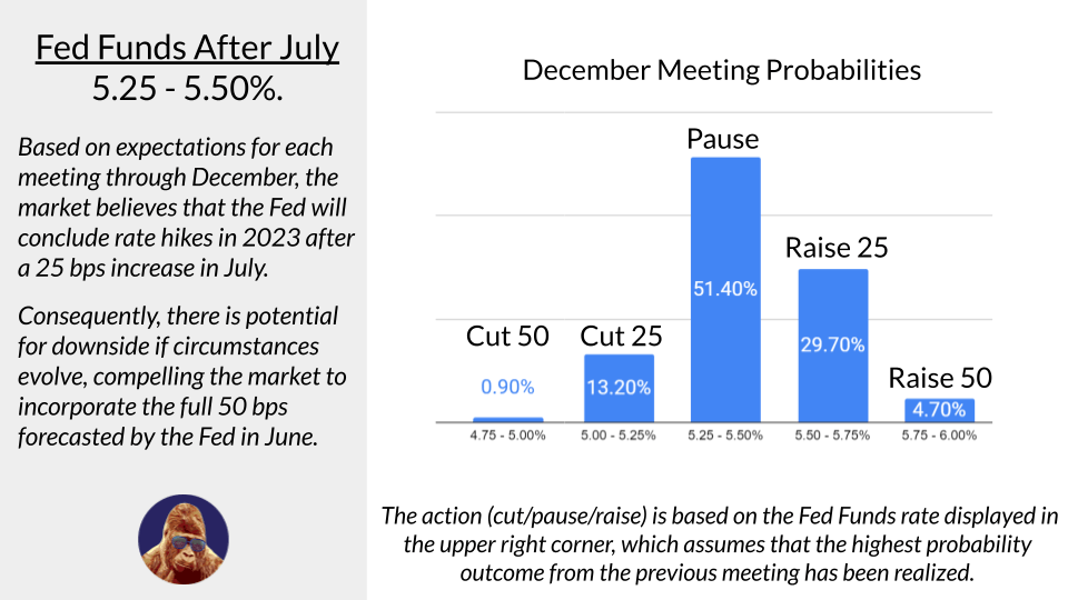 At the June FOMC Meeting, the Fed delivered a “hawkish pause” by keeping the Fed Funds rate unchanged and simultaneously adding 50 bps of additional tightening to their dot plot forecasts.