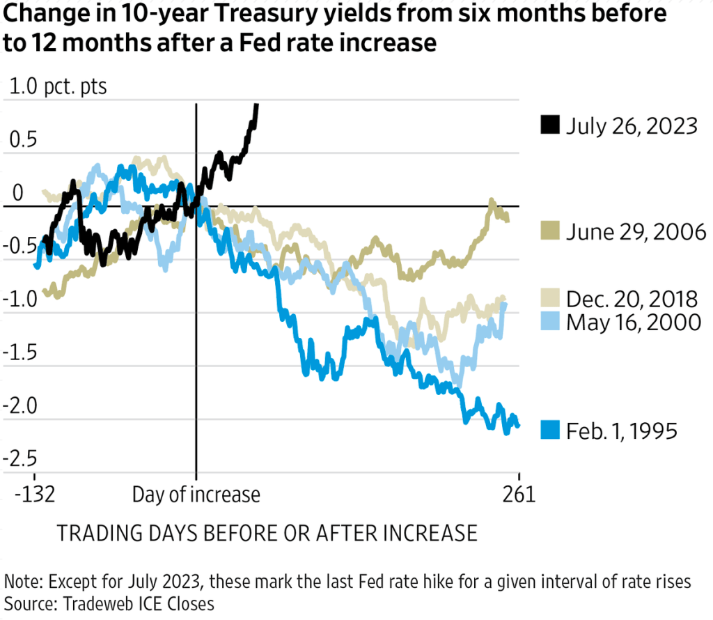 The US10Y yield tends to move on fears of rising inflation or on signs of a strengthening economy. While the fight with inflation is far from over, it no longer makes sense to argue the US10Y is moving on inflation fears: July 2022, CPI reported 9% inflation; August 2023, CPI reported 3.7%. Furthermore, recent action shows the US10Y has been sensitive to economic data. If my thoughts on the US10Y yield are correct, this implies that the bond market is pricing-in a strengthening economy, which means it is not a good time to dump stocks, especially if the Fed is nearly finished raising interest rates. However, earnings need to hold up and yields need to stabilize before stocks have a chance to pricing in that positive outlook