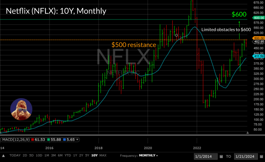 NFLX is not one of the Magnificent Seven, but it has the potential to outperform over the next 3-6 months. In my opinion, the streaming wars are over, and NFLX is the winner. With a profitable platform and a growing subscriber base, neither Paramount, Warner Brothers, nor Disney can make the same claim. NFLX is knocking on the door at $500. Tuesday’s earnings could be the force that slams that door open, clearing a path to $600.