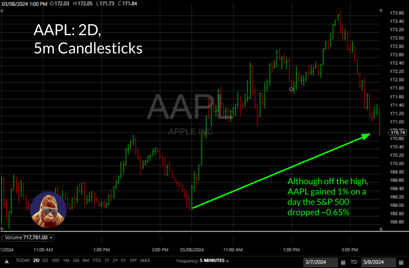 However, such behavior isn’t necessarily the start of a broader sell-off. In fact, Friday proved to be a good day for the “broadening out” thesis. Funds raised by the selling appear to have been redirected to underloved stocks. For instance, Apple and Google, which had been experiencing weeks of softness, managed to gain around 1% on Friday in a down-tape.