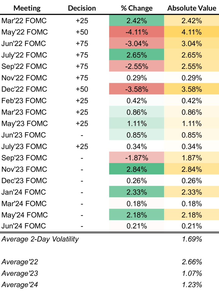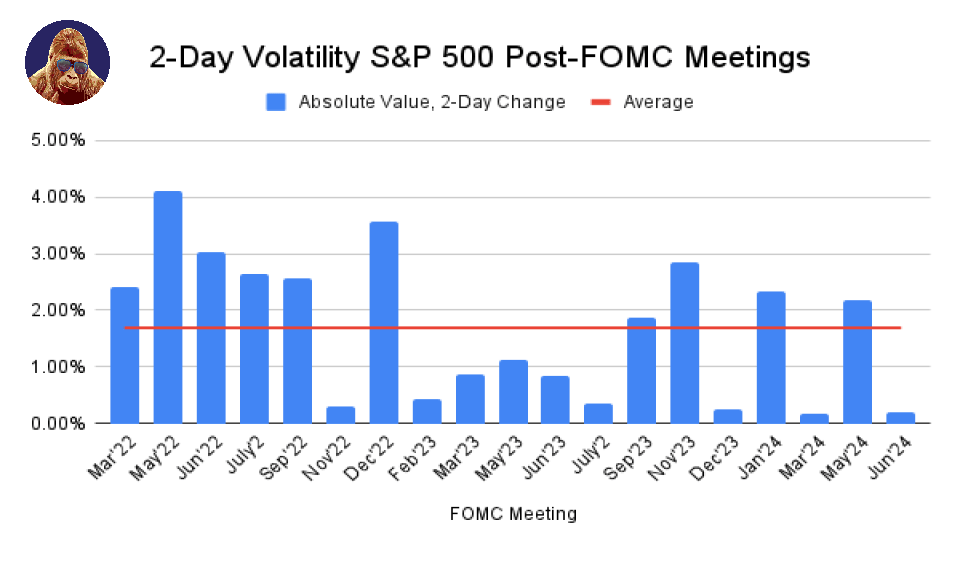 June’s FOMC Meeting was a non-event. The data suggests the FOMC Meeting hasn’t been an event for a while. This is bullish.