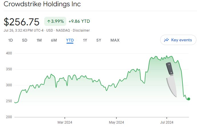 Fair or not, this outage has eroded years of credibility and momentum that CRWD had built with customers and prospects. Closing new and extending current deals just got a lot more challenging. Furthermore, you can already see the tsunami of lawsuits from the shore. High-valuation stocks like CRWD have little margin for error. While the damage here is hard to calculate quantitatively, it clearly surpasses that margin. A 30% drop seems appropriate for a screw-up of this magnitude. In fact, this falling knife may still have further to drop.