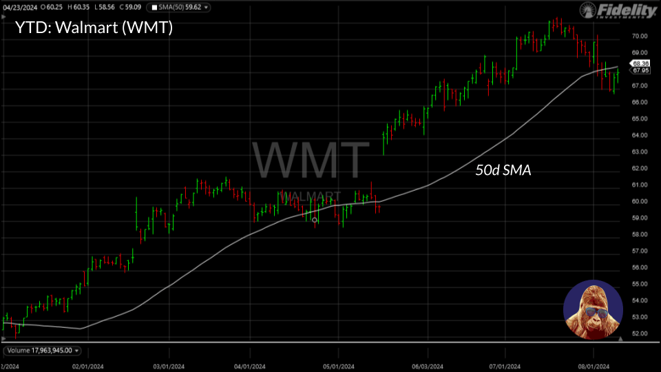My favorite opportunities are those where the technical setup aligns with the fundamental story, and Brinker and Walmart fit this description perfectly. Both are currently battling their 50-day SMAs, and strong quarterly results could provide the fundamental justification for a breakout.