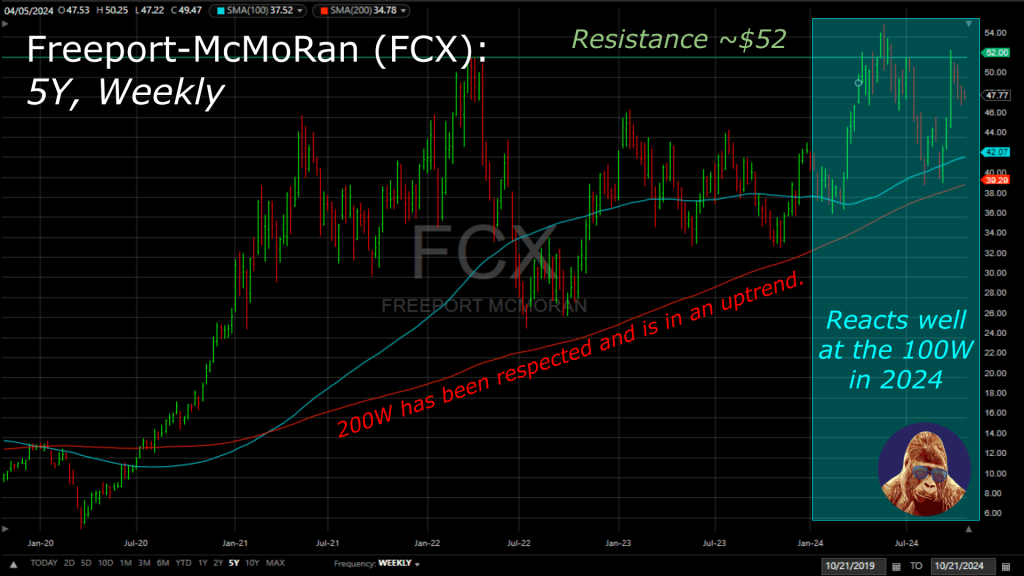 Freeport-McMoRan (FCX), which reports tomorrow, is based in Phoenix and stands as the world’s largest molybdenum producer, a major copper supplier, and operator of the largest gold mine. Despite its diversified operations, FCX is primarily tied to copper, making it a strong play for those looking to benefit from this macro trend.