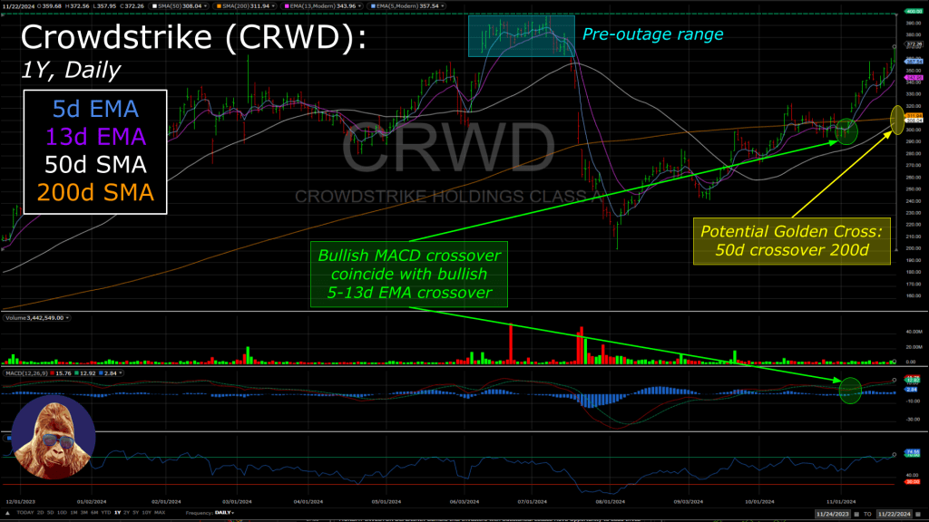 The key level to watch is ~$400 – the stock’s all-time high. As of Friday’s ~$370 close, the 8% gap feels within striking distance (see what I did there?). While it’s encouraging that PANW and FTNT delivered solid quarters, CRWD rallied in sympathy, indicating some degree of optimism is already priced-in.