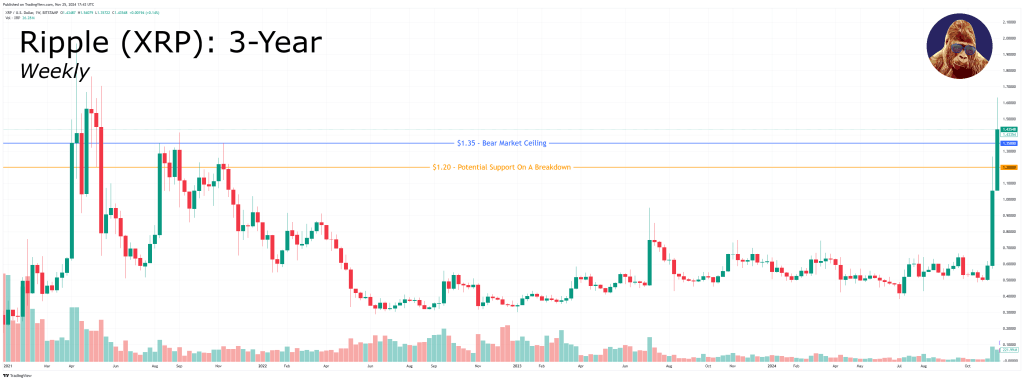Over the weekend, XRP successfully defended $1.35, the ceiling for bear-market rallies during the 2022 bear market. If XRP can consolidate in the $1.40 range, I see no reason why positive crypto headlines couldn’t push it to establish a new base at a higher price, perhaps with a 2-handle.