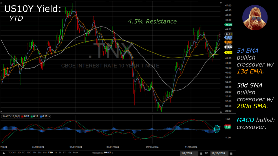 Reduced exposure to these sectors – which continued even during the brief pullback in yields during the first week of December – signals preparation for a potential breakout in the US10Y yield, which admittedly looks ready to rip.