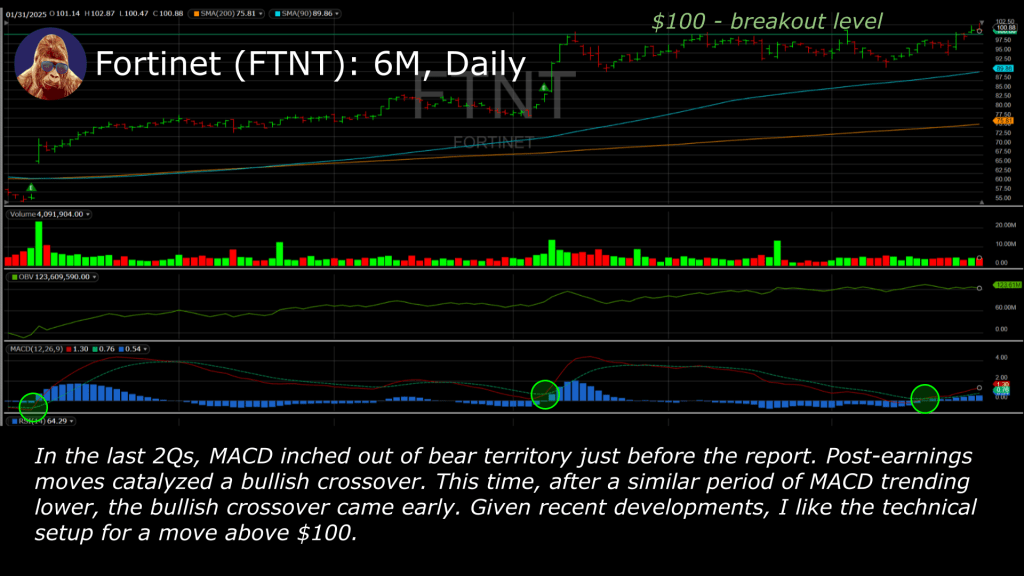 I recently wrote a piece on how the big three in cybersecurity were poised for moves higher. Well, they’re moving. While FTNT’s quarter still needs to deliver for the stock to breakout as the chart suggests it can, I like how it is setting up.