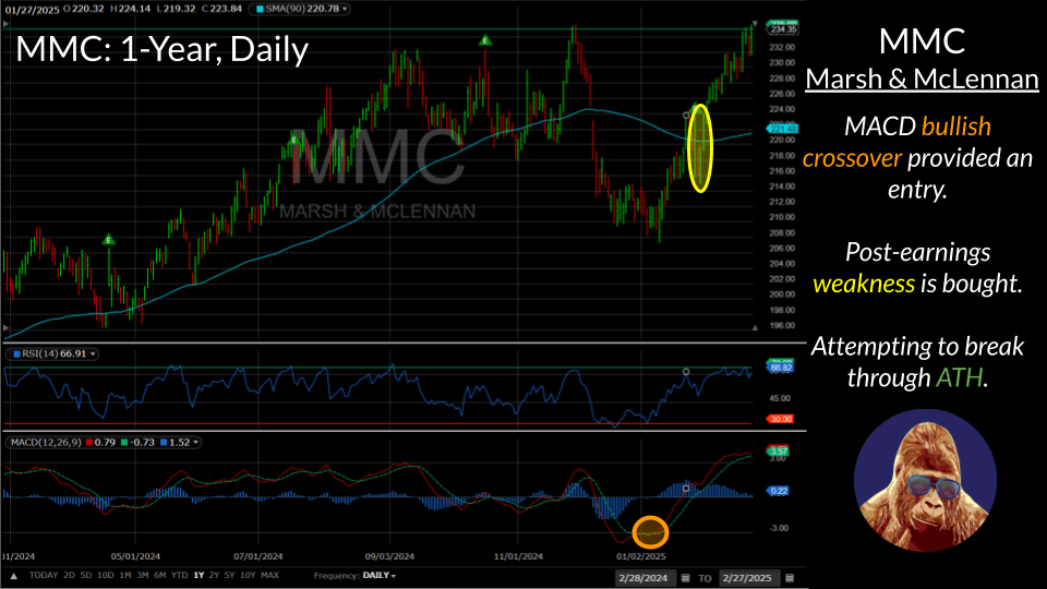 If you already have exposure, Marsh & McLennan (MMC) may still be worth a closer look . This insurance-adjacent name isn’t included in many insurance baskets, meaning it could generate sector alpha while still benefiting from similar tailwinds.