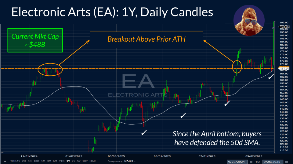 I try to have a lesser-known stock top of mind to share with people when they ask me for a new idea. For the past week, it has been EA. In short, I believe the promising setup in the chart was investors attempting to get ahead of Battlefield 6’s potential to meaningfully improve the company’s future outlook.