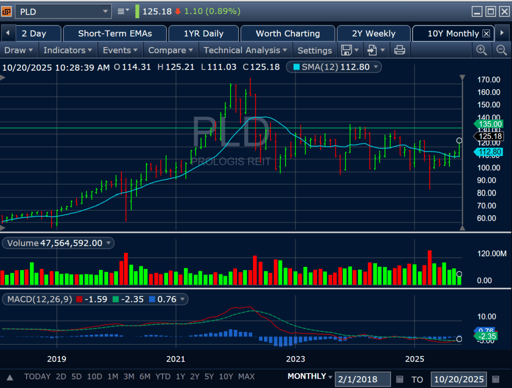 We find PLD at the top of it’s 2024 range.