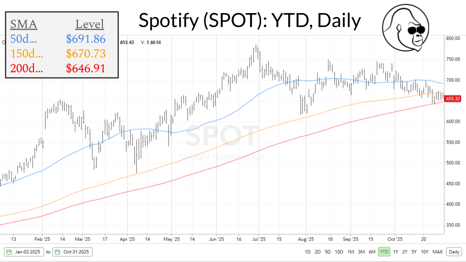 Now let’s take a minute to talk about Spotify (SPOT). While their last quarter wasn’t well received, I viewed the underlying metrics surrounding engagement and usage, specifically monthly average users, MAUs, as indicating that the fundamental story was still intact.