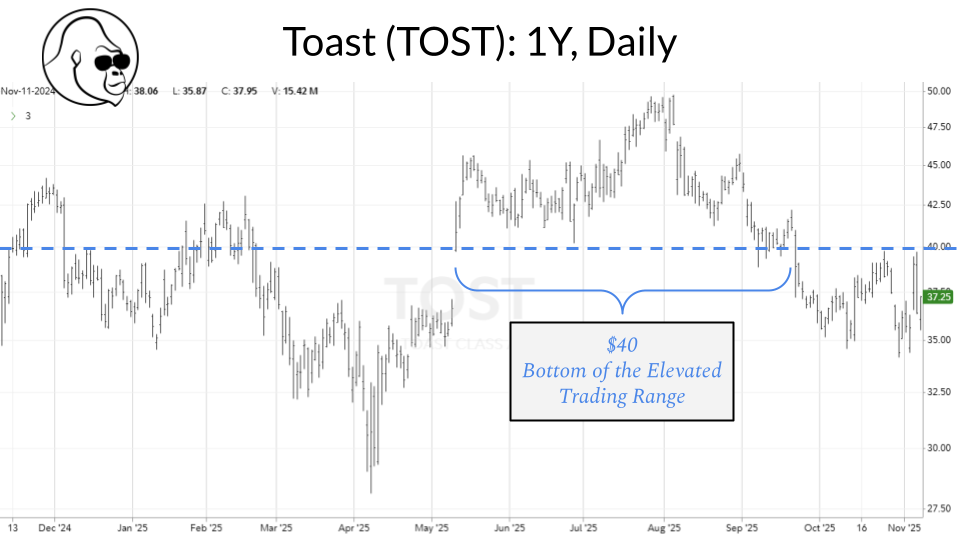 Of all of the names, I like Shake Shack (SHAK) and Toast (TOST). Both charts leave a lot to be desired. As for buy signals, SHAK above the 50d SMA would give me comfort that a durable base is forming. TOST above $40 would signal buyers have reclaimed the name. I am in both of these names. If you are interested, do your homework and size it appropriately. These are emerging growth companies. Volatility is a feature not a bug.