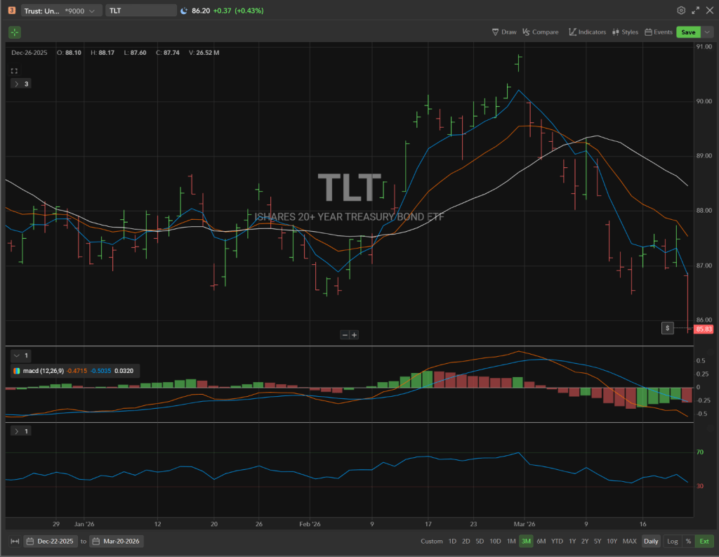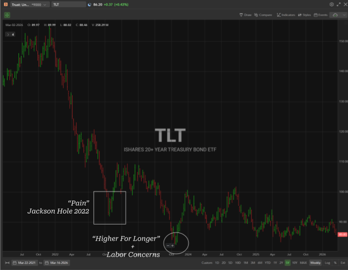 You can play this through the TLT (iShares 20+ Year Treasury Bond ETF). I’ve started with half of a position after Friday’s horrific close. I didn’t go “all-in” because I could imagine a scenario in which there is one more flush and the bond markets look like they did in October 2023. However, I could also imagine a scenario where there is a swift conclusion and markets are forced to unwind a meaningful amount of the hawkish tension in prices.