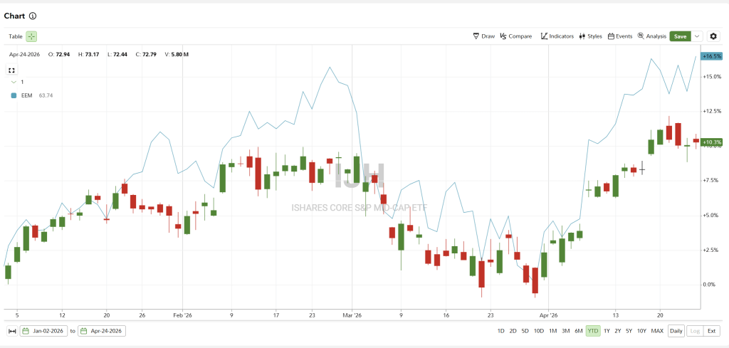 Although emerging markets have outperformed U.S. mid YTD, I see the relative insulation as a catalyst for U.S. outperformance – which is much less reliant on crude oil – until headwinds surrounding energy-driven margin pressure subside.